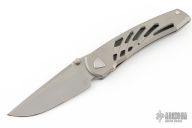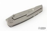 This Mini Waka by Edison Barajas features a blasted blade with notched thumbrest and dual thumbstuds, can be front flipped. The handle has a milled and blasted titanium frame with matching backspacer and tip up clip with hidden screws. Has custom pivot. Rides on bearings, nice detent, lockup and blade seating. Comes with original box and COA.  Excellent Condition.