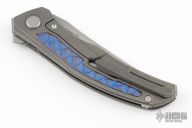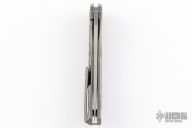 This Quantum Ursus by Shirogorov features a tumble finish blade with notched thumbrest and flipper. The handle has a blasted and milled titanium frame, Dragon inlays, backspacer, tip up titanium clip with hidden screws. Rides on SRBS, nice detent, lockup and blade seating. Cromax PM blade steel. Excellent condition. Comes with original box and COA.