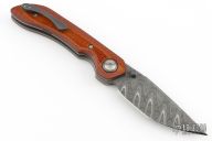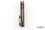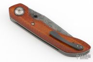 This Carbide by Steve Dumchus features a Composite Ladder pattern Damascus blade with notched thumbrest and dual zirconium thumbstuds. The handle has a crosscut brown G-3 scales, stonewashed titanium liners, zirconium backspacer, pivot collars and tip up clip. Nice detent, lockup and blade seating. Excellent condition. Comes with COA dated 07/2022. Comes with original case.