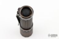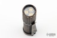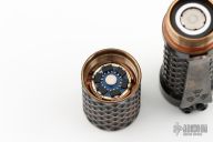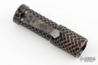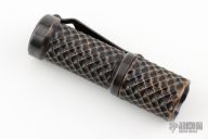 This Total Tesseract Trident by Hanko Machine Works is made from Copper, it has a Tesseract pattern, has a tip up titanium clip. Components: Nichia 219C High CRI (90+) 4000K. Excellent condition. Comes with a zippered case.