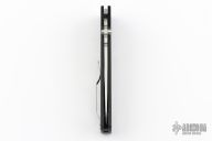 The Hold Out's beautiful black blades are extremely broad; they are flat ground from the spine, with a shallow "V" cross-section culminating in a razor sharp hand-honed edge. Continuously curved from the heel to the needle-sharp tip, the blade cuts and shears through tough and fibrous material with ease and makes short work of tasks that would challenge many of the folding knives on the market today.