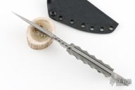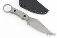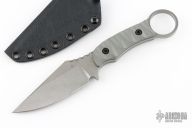 This Vandal by Toor Knives features a stonewashed blade with notched thumbrest, .189" blade stock and 1.398" blade depth, full tang construction. The handle has grey G-10 scales with black liners. Comes with a kydex sheath. Excellent condition.