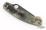 The Military folder by Spyderco has been in production since the 1990s in a variety of steels, materials and colors. This linerlock Military folder has a black S30V blade and digi-camo G10 scales. Blade choil and thumbrest are jimped for better control. The oversized blade hole makes opening a natural and smooth action even if wearing gloves. Black tip down carry. Excellent condition. Comes with original box, box is a little beat up.