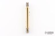 This 13" swivel bolster features a polished dagger ground blade. The handle has stainless steel bolsters, front and rear, imitation ivory scales, brass liners, stainless spring. Excellent condition. Comes with original box and sheath.
