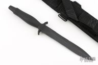 The Mark II by Gerber is one of the best selling knives of all time. First introduced in 1966, this tactical knife is serialized for collectors. Black finished partially serrated double edged blade, .217" blade stock and .956" blade depth, hidden tang construction. Black aluminum handle. Comes with a custom black nylon sheath. S/N K6068S. Has a couple light scuffs/scratches, otherwise excellent condition.
