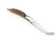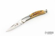 "The diminutive Osprey™ an Al Mar Classic since 1979, offers timeless design and peerless craftsmanship usually found only on the finest custom hand made knives; all in the smallest, highest quality, front lock made today. The Osprey™ features stainless steel bolsters, brass liners and comes with a finely crafted leather pouch embossed with the Al Mar logo."