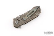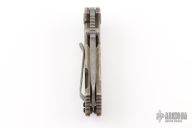 This Custom Half Track from Hinderer Knives features a "Battlefield Pickup" finished blade with swedge, flipper and a notched thumbrest. The handle has a titanium frame over barrel spacers with a "Battlefield Pickup" finish. Titanium clip is positioned for tip up, right hand carry. Excellent condition. Comes with a zippered case.