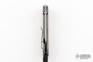 This Unumzaan from Chris Reeve Knives features a stonewash finish blade with dual thumb studs and notched thumbrest. The handle has a bead blasted and milled titanium with matching tip up clip. Lanyard pin with lanyard and spacer bead in pommel. Comes with original box, papers and COA dated November 21, 2024. Excellent condition.