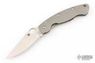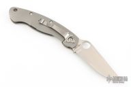 The Military folder from Spyderco has been in production since the 1990s in a variety of steels, materials and colors. This framelock Military folder has a satin finish S30V blade and a fluted and anodized titanium frame. Blade choil and thumbrest are jimped for better control. The oversized blade hole makes opening a natural and smooth action even if wearing gloves. Tip down carry. Comes with original box and papers. Excellent condition.