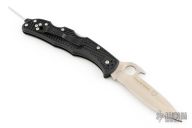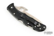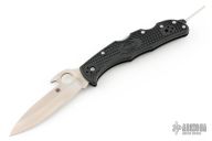 This knife's stout, saber-ground, PlainEdge™ blade is crafted from VG-10 stainless steel and features both Spyderco's Trademark Round Hole™ and a fully licensed Emerson Opening Feature to ensure high-speed, one-handed deployment. When carried tip-up, the Emerson Opener catches on the lip of the pocket as the knife is drawn to automatically open the blade.