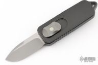 This OTF by Prometheus Design Werx, and Darriel Caston features a two-tone satin and bead blast blade with swedge. The handle is black aluminum with a tip down stainless steel clip. Comes with a zippered case. New condition.