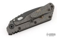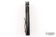 This Mick Strider SMF Fatty framelock folder features a black blade with thumbhole and notched thumbrest. The handle has a black aluminum and flame finished titanium frame with titanium clip, tip up carry. Jimping on blade spine. Nice lockup, detent, and blade seating. NSN: 1095-01-531-5015. Excellent condition.