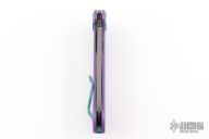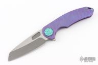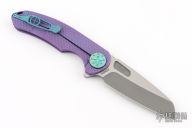 The latest from Curtiss Knives. This F3 Large Flipper Wharny has Slide Mill on the Ti, Polished teal Hardware, and a 2 Tone Magnacut Blade.