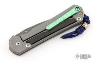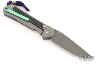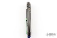 This one has a Boomerang Damascus blade, and bead blasted titanium frame with wood inlays. Has upgraded RGT Timascus clip, upgraded hardware, and lanyard. Comes with original clip, hardware and lanyard. Comes with original box, leather sheath, and papers dated Aug 31, 2022. Excellent condition.