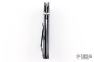 This Pocket Rocket by Shane Sibert features a satin finished spear point blade and an anodized titanium handle with a bead blast finish, tip up two tone titanium clip. Notched thumbrest. black G-10 backspacer. Smooth action. Nice detent, lockup and blade seating. Outstanding work. Excellent condition.