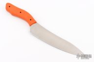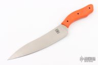This ProLine 7" Chef's Knife by Gerry McGinnis features a satin finished blade with .111" blade stock and 1.544" blade depth, full tang construction. The handle has Orange G10 scales. Comes with original box and instructions. AEB-L Stainless Steel blade. Excellent condition.