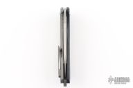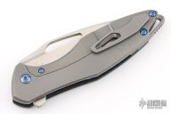 This Arius by Koenig knives features a stonewash finished blade with thumbhole and flipper. The handle has a smooth carbon fiber and bead blasted titanium frame, titanium tip up clip with hidden screws, and a titanium backspacer. Has ceramic bearings and a ceramic detent ball. Nice detent, lockup and blade seating. Comes with original box and COA dated May 21, 2020. Excellent condition.