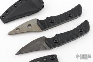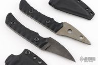 The Shrike by Ironside Edge Works features a black 8oCrv2 steel blade with .211" blade stock and 1.391" blade depth, full tang construction. The handle has black G-10 scales with Tsuka Texture. Includes a kydex sheath, Ulti-clip and hardware, and COA dated 11-25-24. Comes with original box and paper work. Comes with a matching trainer with kydex sheath. Excellent condition.