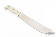 The blade has .086" blade stock and 2.169" depth, full tang construction. Saw teeth on the spine. 11.5" blade 17" overall. Excellent condition.