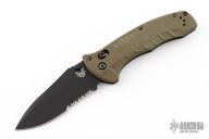 This model of the Benchmade Turret sports a black partially serrated blade made from CPM-S30V, and OD green G-10 handle scales.