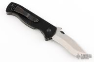 This Com-Seven by Emerson Knives has a stonewashed blade with notched thumbrest, wave feature and a thumbdisc. The handle has black G-10 scales, titanium liners, barrel spacers, tip up black stainless steel clip. #0074. Comes with original box and papers. Has a couple light scuffs, otherwise excellent condition.