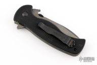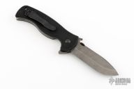 This Sheepdog from Emerson Knives features a black blade with notched thumbrest and flipper. Knife can be opened using the thumb disk, wave feature or flipper. The handle is comprised of black G10 scales over titanium liners with barrel spacers and an anodized deep carry reversible pocket clip positioned for (right or left handed) tip up carry. #0113. Comes with original box, original black clip, and papers. Has a couple light scuffs, otherwise excellent condition.