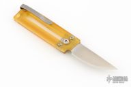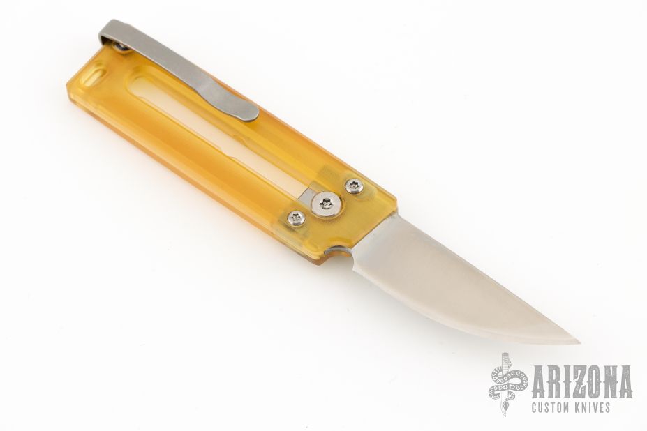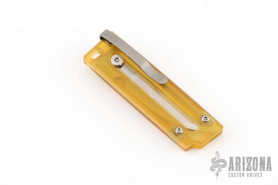 The Manual OTF is an exceptional EDC knife. It has a Katana M390 blade with ultem handles with titanium tip up clip. The blade extends and retracts from the front of the handle, sliding on rails. There are no springs involved just the mechanical movement of pushing and pulling of the button. It is legal to own carry this knife in California, but this is manual so it doesn't even matter. Please know your knife laws for your state. Includes the original tube. Excellent condition.