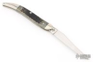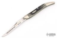 This Toothpick by Case Knives features mirror finished blade with nail nick. The handle has nickel silver bolsters, jigged bone covers, brass liners, and a stainless spring. Excellent condition. Comes with original box and papers.