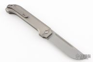 The KatanaX is a stout and stylish EDC automatic knife from D Rocket Designs. This model has a bead blast finished titanium handle and a bead blast finished blade. The clean modern design is accentuated by satin polished hardware, safety, and push button. Comes with original box. Excellent condition.