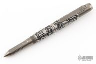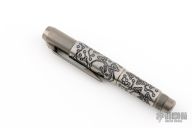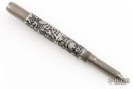 Titanium Screw top pen and tool by Shirogorov Knives with Ti2 Design laser engraving. Uses a LAMY M22 cartridge. Comes with original box, and cloth. Excellent condition.