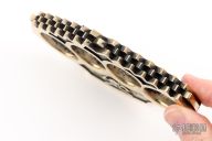 Uncle Stumpy is a man who is not afraid to get his hands dirty. Due to this lifestyle, he was in need of a manly exfoliator as every modern gent is. Hence, the Snuckles exfoliator and meat tenderizer. Use with care, or don't. Uncle Stumpy isn't responsible for stupidity. Comes with original bag. Some of the black antiquing has worn off, otherwise excellent condition.