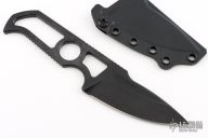 Knife is supplied with a sheath manufactured in house. The sheath feature all stainless hardware and adjustable retention. Additionally, the top rivet holes are based on the common .75"/1.5" spacing, so they can be used with various attachment methods.