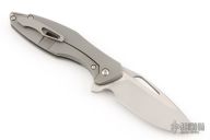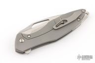 This Mini Arius by Koenig knives features a Burnished w/ PF finished blade with thumbhole and flipper. The handle has a bead blasted smooth titanium frame with a titanium tip up clip, titanium backspacer. Has ceramic bearings and a ceramic detent ball. Nice detent, lockup and blade seating. Comes with original box and COA April 12, 2024. Excellent condition.