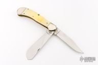 This Saddlehorn by Case features 2 mirror polished blades with nail nicks. The handle has nickel silver bolsters, jigged bone scales, brass liners and stainless springs. Comes with original box, COA and papers. Excellent condition. #L5775