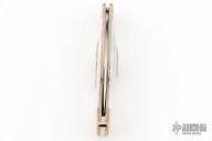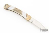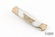 This Buck features a mirror finished blade with nail nick. The handle has nickel silver bolsters with integral liners, stag inlays and stainless steel spring. Comes with original box, papers and slip sheath. Excellent condition. #1737/190 on blade.