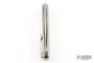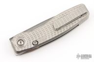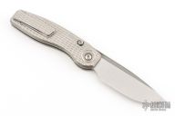 This FSD by Craig Brown Knives features a drop point stonewashed satin finished blade and notched flipper and fullers. The handle has a tumbled titanium frame with milling style #1, titanium tip up clip and backspacer. Nice detent, action, blade seating and lock up. Comes with original hard case with certificate #113. Excellent condition.
