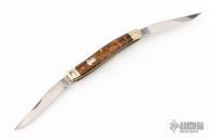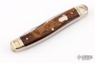 This Muskrat by AG Russell features mirror polished blades with nail nicks. The handle has fluted nickel silver bolsters, acrylic covers with a nickel silver acorn escutcheon, nickel silver liners and stainless steel spring. Has a couple light scratches, otherwise excellent condition.  Comes with original box.