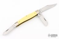This Stockman by Case Knives features yellow covers, double nickel silver bolster all over brass liners. All three blades are mirror polished with nail nicks. Has a few light scratches, otherwise excellent condition.