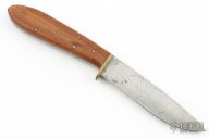 This Cliff Canoe Knife by Idaho Blade Works features .198" blade thickness and .940" blade depth. Flat ground satin finish blade. Full tapered tang construction with brass guard and wood scales. Has some scratches and oxidation, otherwise good condition.