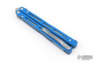This Benchmade Morpho 51-1501 features a drop point tumble finished blade with swedge. The handle is comprised of blue G10 scales over jeweled titanium liners over notched steel backspacers. Tumbled titanium tip up clip. T latch on pommel. Includes original box, pouch, and papers. Has a couple light scuffs and scratches, excellent condition otherwise.