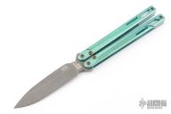 This Serpent model is outfitted with green anodized and tumbled titanium handles and a tumble finished CTS-XHP steel blade.