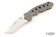 This Triumph by Crawford Knives features a satin finished tanto blade with thumbhole and flipper. The handle is bead blast titanium with a matching stainless clip, tip down carry, and a stainless steel backspacer. Has nice lockup, and blade seating. Comes with a zipper case. Has some light scuffs, excellent condition otherwise.