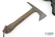 The Dvalinn is a full tang tomahawk made from .270" thick 1075 carbon steel, and features grippy 3D contoured G10 handle scales. The handle end features a small pry-bar, and there are holes provided in the handle that allow you to add paracord to the grip to "lock it in" to your hand for serious use. Think of this tool as your designer SKELETON KEY to wherever you wish to go. Pry, chop, fight, etc.