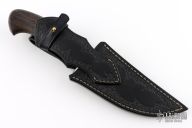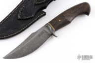 This Arcan No.2 by Wroan Custom Knives features an acid stonewashed blade with false top edge, .244" blade stock and 1.737" blade depth, hidden tang construction. The handle has an antiqued steel guard, bog oak grip with brass spacer and pin. Comes with a hand tooled black leather sheath and a COA dated 10-10-24. New from maker!