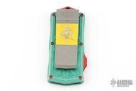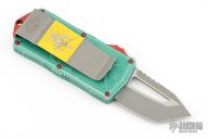 This Microtech Exocet features an apocalyptic finished tanto blade. The handle has a distressed green aluminum handle and a stainless clip that doubles as a money clip dated 03/2021, S/N 3412. Comes with original box and papers. Excellent Condition.