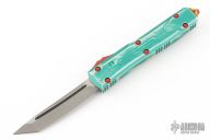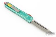 This Star Wars themed Ultratech by Microtech knives features a standard tanto blade with fullers and apocalyptic finish. The handle has a green battle worn aluminum frame with red and yellow hardware. Comes with original box and papers. Dated 12/2020 #5099. Excellent condition.