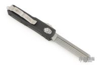 This UTX-85 OTF automatic Tactical Beard Comb by Marfione Custom Knives features a fine tooth hand ground stonewashed comb blade, and a black aluminum handle with tip down bead blasted stainless steel clip. Dated 03/2021. Comes with original box, zippered case, beard oil "celtic fire" blend, and COA. Excellent condition.