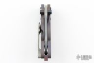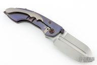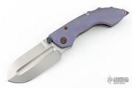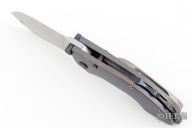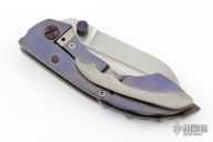 This Gladius by Phil Harvey was modeled after a Roman Short Sword. It features a multiground hand rub satin finished blade with dual thumbstuds, the blade stock is .266" thick. The handle has an orange peel finished and anodized titanium frame and clip, anodized titanium backspacer, colored pivot. Nice detent, lockup and blade seating. This thing is a beast. Excellent condition.