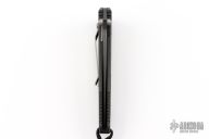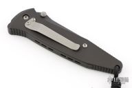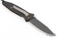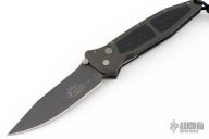 This Socom D/A tactical side-opening automatic by Microtech has a black coated plain edge blade. Dated 6/98. Has a black aluminum handle with rubber inserts, all hardware including clip is bead blasted. Strong action and perfect lockup. Comes with original gold Microtech box and papers. Has a couple light scuffs and scratches, excellent condition otherwise.