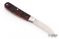 This Swayback Slipjoint by Charles Vestal features a hand rub satin finished blade with nail nick. The handle has 416 stainless steel bolsters with integral liners, brown jigged bone covers, CPM-154 spring. Has half-stop, flush in all positions. Comes with a zippered case and COA. New from maker!